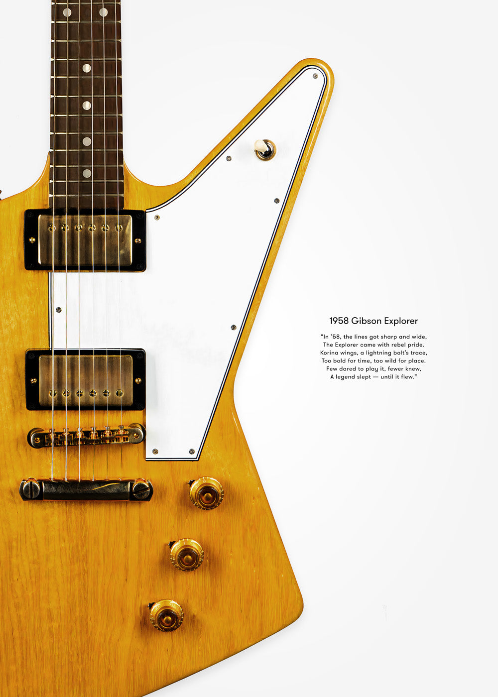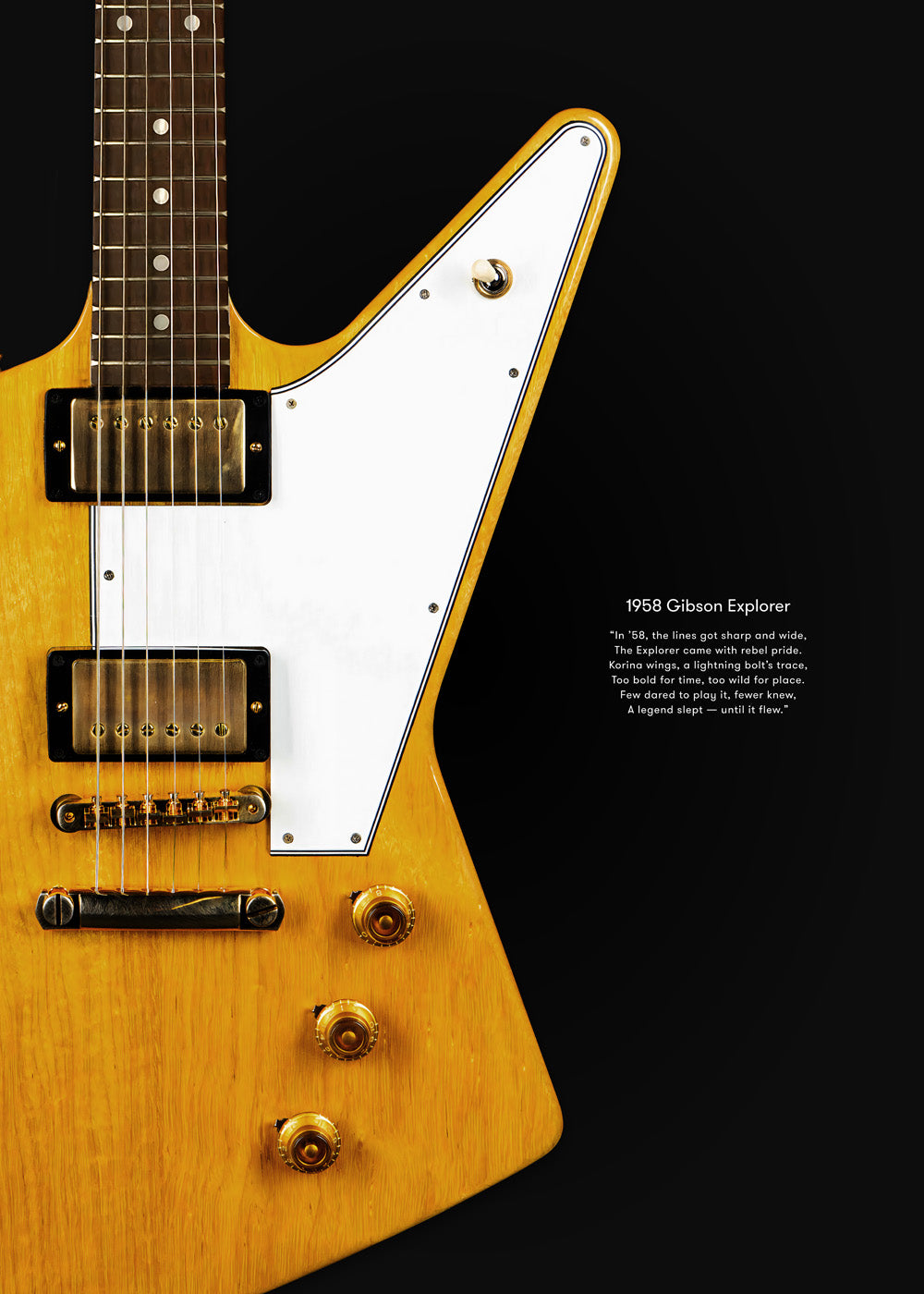 Where music meets words. Our Poem Edition celebrates legendary guitars not only through detailed artwork, but also through original verses that capture the spirit, history, and soul of each instrument. Each poster pairs an iconic guitar with a hand-crafted poem, written with the same passion and reverence that built the guitars themselves. A fusion of art, music, and poetry — designed for players, dreamers, and collectors who believe that every guitar has a story to tell.